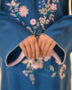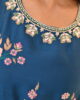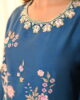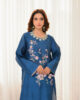 An exquisite emerald green khaddi silk ensemble, featuring a beautifully crafted shirt with intricate embroidery along the neckline and front, accentuated with delicate embellishments and fine detailing. Paired with a chic tapered shalwar and an embroidered organza dupatta