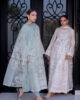 A graceful mint and white long organza shirts, exquisitely adorned with intricate hand embroidery and delicate chicken detailing. The statement back motif adds an elevated touch of artistry, while the embroidered organza dupatta enhances its ethereal charm. Paired with sleek tailored pants, this ensemble blends timeless elegance with contemporary refinement.