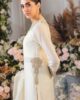 Dupatta is enhanced with circular patterns embroidered in