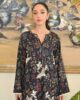 A chic, straight-cut long tunic crafted from breathable Irish linen, featuring intricate embroidery. The subtle yet elegant print adds a touch of modern sophistication. Paired with tailored cigarette pants for a sleek, contemporary silhouette