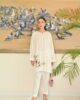 A chic short-length shirt adorned with intricate Aari embroidery, perfectly paired with sleek, straight-cut pants for a stylish and contemporary look