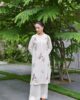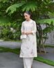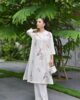A light and airy Swiss voile shirt, intricately detailed with delicate embroidery. The look is completed with stylish culottes, offering a relaxed yet polished silhouette perfect for warm weather.
