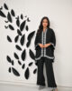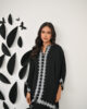 An Italian georgette co-ord set featuring a stylish shirt, exquisitely hand-embroidered and embellished, paired with flowy straight pants for an effortlessly elegant look
