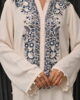 An Italian georgette co-ord set featuring a stylish shirt, exquisitely hand-embroidered and embellished, paired with flowy straight pants for an effortlessly elegant look