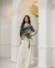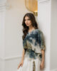 A sophisticated wrap tunic featuring bespoke marble dyeing, intricate embellishments, and playful tassels, offering a contemporary twist. This is beautifully paired with our timeless flared pants, creating a seamless blend of modern elegance and classic style