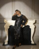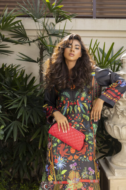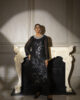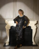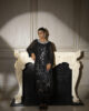 A graceful cotton net long shirt adorned with hand-embroidered details, sequins, and embellishments, paired with stylish flared pants for an effortlessly elegant look.