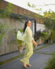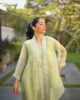 An intricately embellished wrap top with delicate embroidery, paired with stylish culottes