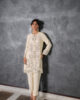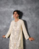 A beautifully crafted cotton net shirt featuring intricate silver embellishments and embroidery, paired with our sleek straight pants, making it the perfect ensemble for festive celebrations.