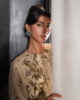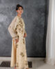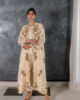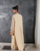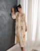 A long front-open jacket adorned with matte gold embroidery and intricate embellishments, paired with sleek pants—an impeccable choice for your special events